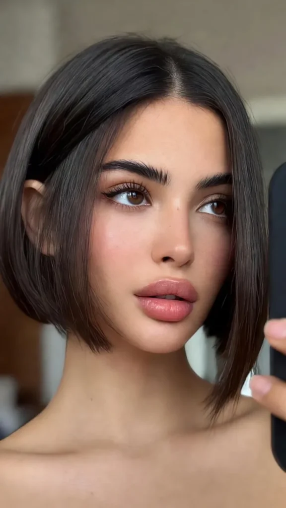 Sleek, shiny, and unbothered. Middle-part straight reads expensive even when you paid smart. Pair with a silk press on your leave-out and a light serum. Minimal effort, maximum “who is she?” energy.